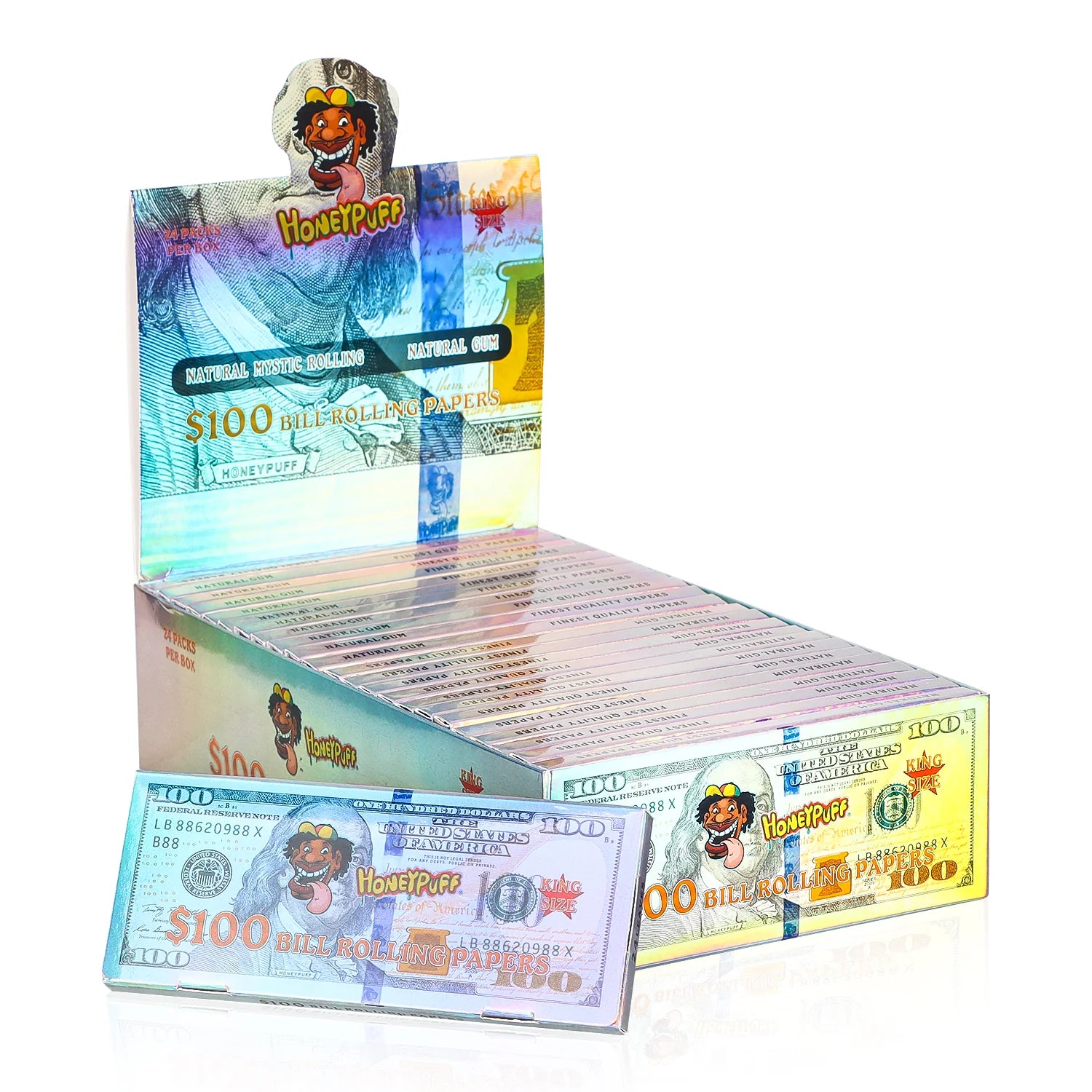HONEYPUFF 100 Dollar Rolling Papers King Size Natural Gum Rolling Papers - 24 Ct