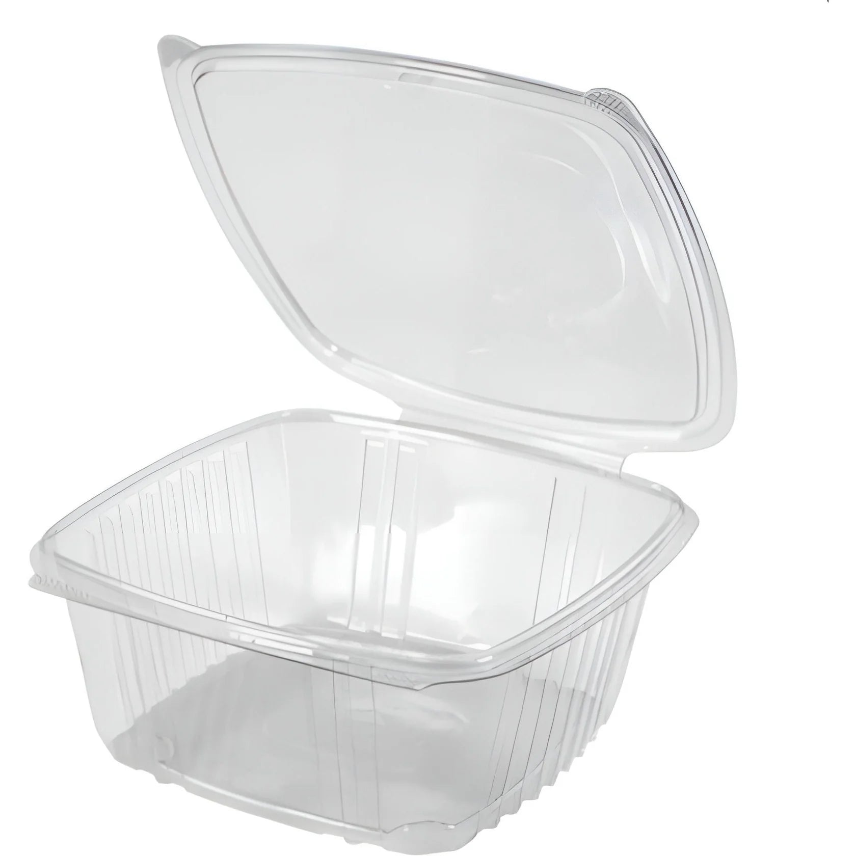 Clear 32 oz Plastic Hinged Container is a versatile and eco-friendly solution for deli and food storage needs. The Clear 32 oz Plastic Hinged Container is a practical and sustainable option for your deli and food storage requirements. This container is designed to hold 32 ounces of food contents, making it perfect for individual or smaller food portions. Made with APET (amorphous polyethylene terephthalate) material, this container offers clarity and durability, allowing customers to see the contents inside and providing a secure enclosure for your food products. The clear color adds a clean and attractive presentation to your deli items.