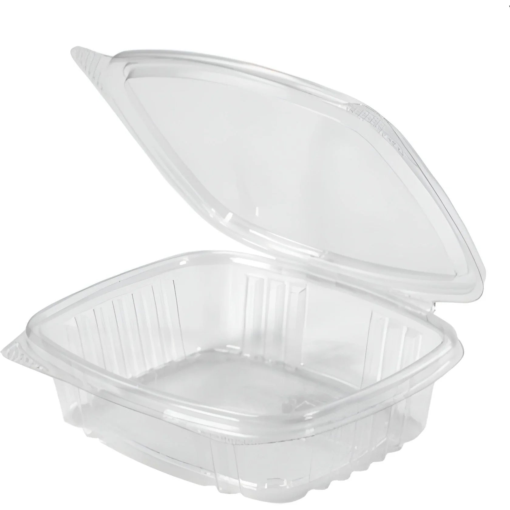 Clear 8 oz Plastic Hinged Container is a versatile and eco-friendly solution for deli and food storage needs. The Clear 8 oz Plastic Hinged Container is a practical and sustainable option for your deli and food storage requirements. This container is designed to hold 8 ounces of food contents, making it perfect for individual or smaller food portions. Made with APET (amorphous polyethylene terephthalate) material, this container offers clarity and durability, allowing customers to see the contents inside and providing a secure enclosure for your food products. The clear color adds a clean and attractive presentation to your deli items.