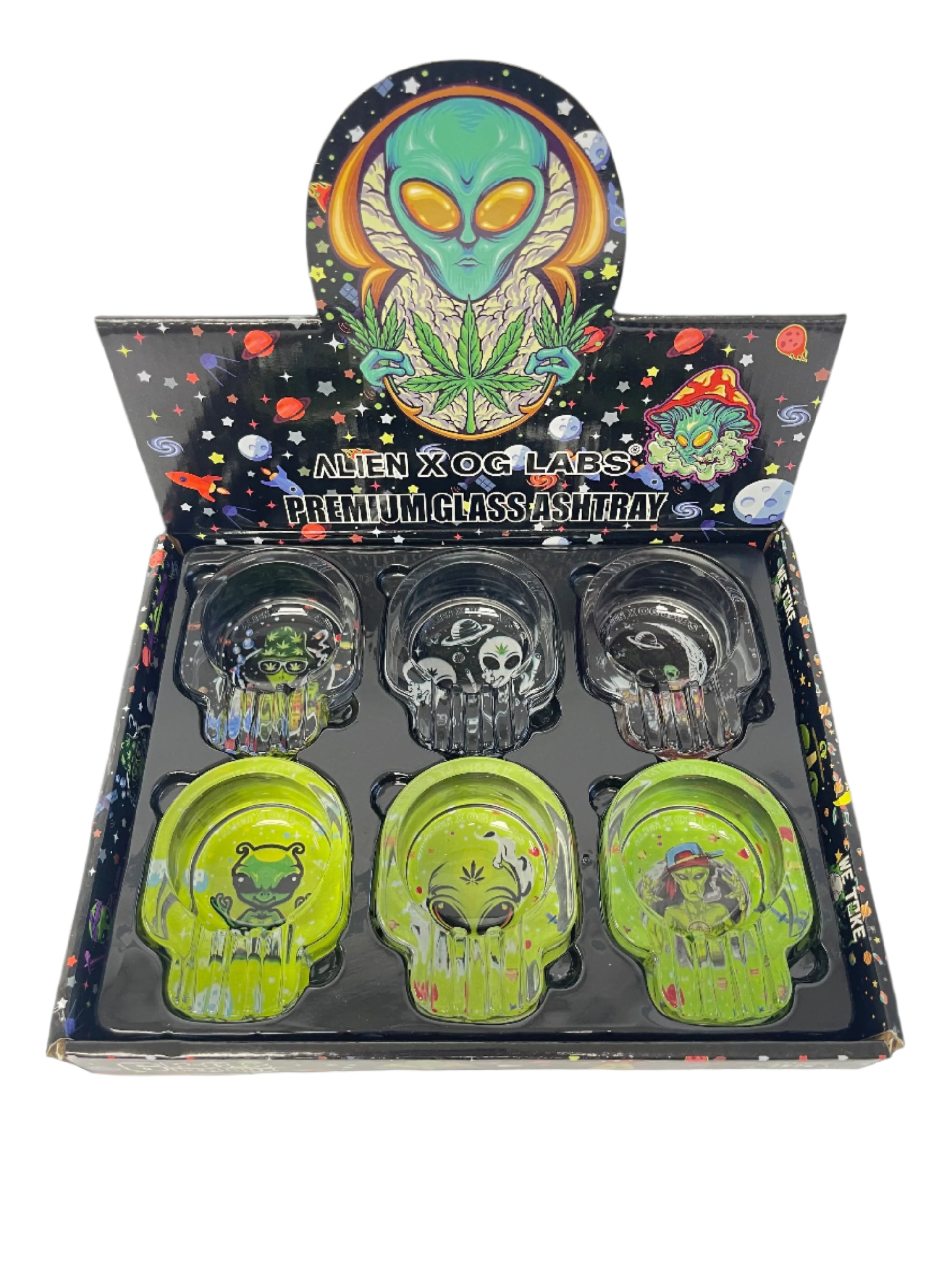 - 6 Glass Ashtrays in a Display